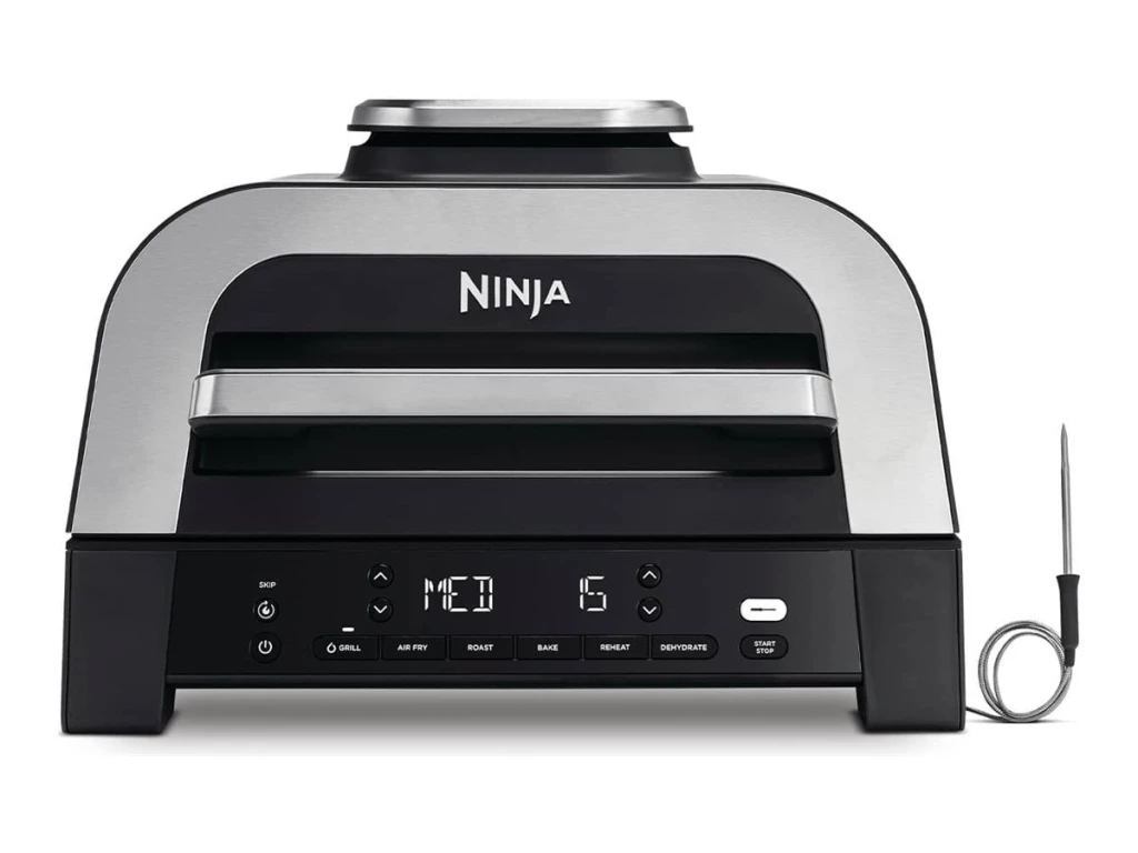 6 cooking functions: Grill, Air Fry, Roast, Bake, Dehydrate & Reheat - all in one appliance; Fast grilling & cooking: Cyclonic Air Technology & heavy-gauge grill plate cook food fast; Smart Cook System: Built-in thermometer probe removes guesswork, for the perfect cook level Up to 75% less fat than deep frying & cooks up to 45% faster than fan ovens