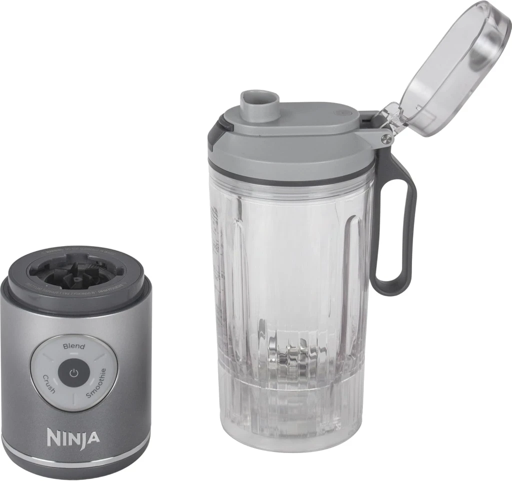 Long-lasting battery life: Blend on-the-go with up to 25 blends per full charge; Removable Twist & Go cup: Light & portable blending with leak-proof sip lid & carry handle; Auto-iQ Technology: Ninja’s Auto-iQ Technology uses pulse and pause patterns and a sharp CrushBlade to Blast through tough ingredients.