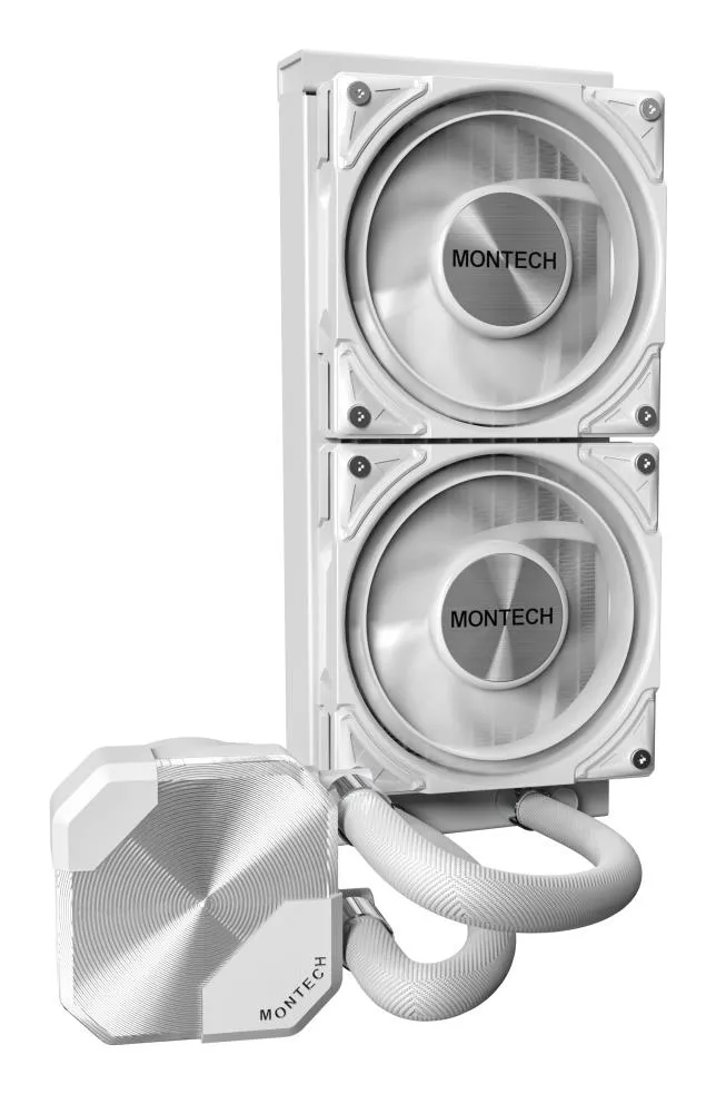 | Summary | Montech HyperFlow Silent 240. Type: All-in-one liquid cooler, Fan diameter: 12 cm, Airflow: 129.5 m³/h, Maximum air pressure: 3.12 mmH2O, Bearing type: Fluid Dynamic Bearing (FDB). Product colour: White |