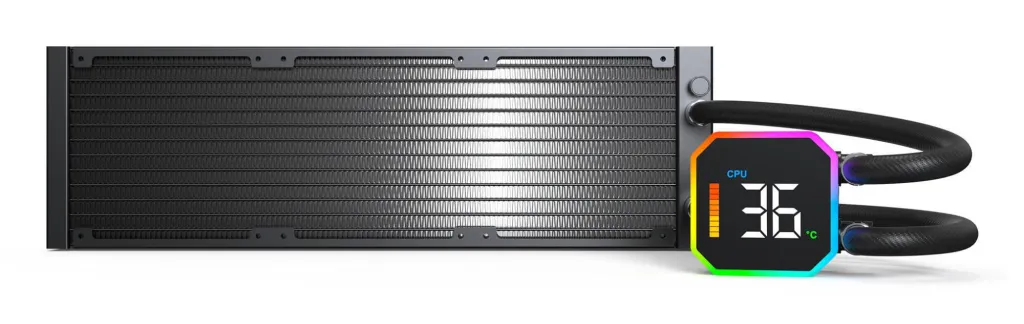 | Summary | Montech HyperFlow Digital 360. Type: All-in-one liquid cooler, Fan diameter: 12 cm, Airflow: 129.5 m³/h, Maximum air pressure: 96.27 mmH2O, Bearing type: Fluid Dynamic Bearing (FDB). Product colour: Black |