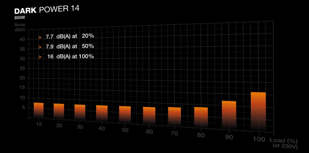 be quiet! Dark Power 14 850 W - 80 Plus Titanium. Koguvõimsus: 850 W, AC-sisendpinge: 100 - 240 V, Tipuvõimsus: 950 W. Emaplaadi toitepistmik: 20+4 pin ATX, Emaplaadi toitekaabli pikkus: 60 cm, SATA toitekaabli pikkus: 600,750,900,1050 mm. Otstarve: PC, Toiteploki (PSU) standard: ATX, 80 PLUS sertifikaat: 80 PLUS Titanium. Toote värv: Must, Jahutuse tüüp: Aktiivne, Ventilaatori läbimõõt: 13,5 cm. Vastavussertifikaadid: CB, Föderaalne kommunikatsioonikomisjon (FCC), RoHS, TÜV mark, UKCA, WEEE, cTUVus