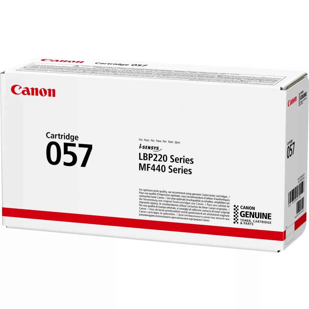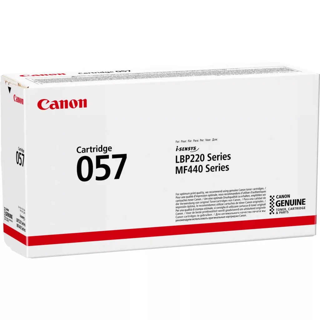 | Summary | Canon 057. Black toner page yield: 3100 pages, Printing colours: Black, Quantity per pack: 1 pc(s) |