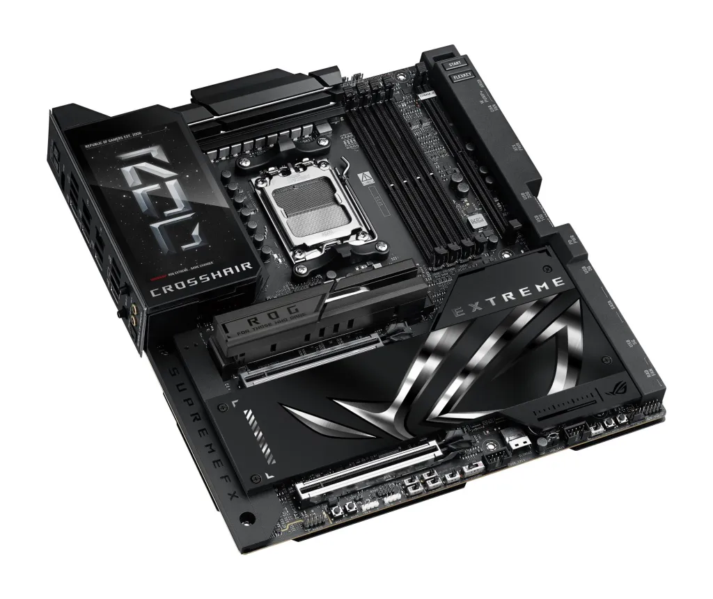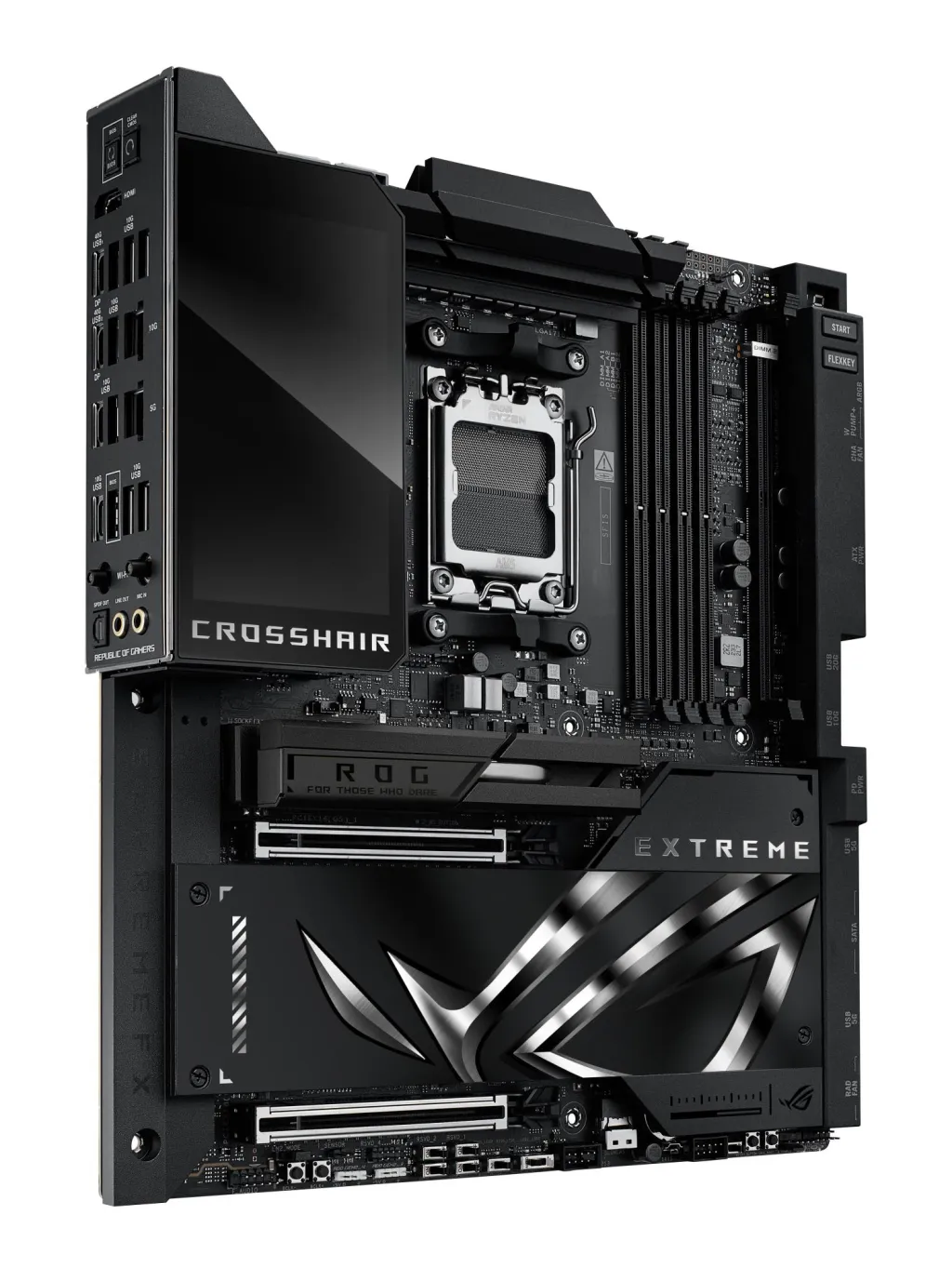 The ROG Crosshair X870E Extreme is the flagship AMD Ryzen™ 9000 series motherboard, designed for the most discerning users. It provides the ultimate foundation for AM5 CPUs, DDR5 memory, and PCIe® 5.0 components to ensure maximum performance and future-readiness. Its comprehensive connectivity includes USB4®, and the integrated 5-inch LCD offers a unique way to monitor system performance or add a touch of personalized style.