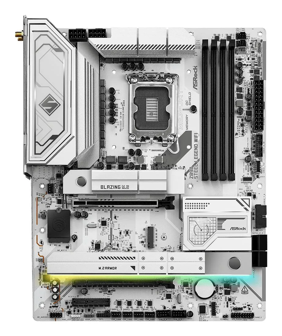 | Summary | Asrock Z890 Steel Legend WiFi. Processor manufacturer: Intel, Processor socket: LGA 1851 (Socket V1), Compatible processor series: Intel Core Ultra (Series 2). Supported memory types: DDR5-SDRAM, Maximum internal memory: 256 GB, Memory slots type: DIMM. Supported storage drive interfaces: M.2, SATA III, RAID levels: 0, 1, 5, 10. Ethernet interface type: 2.5 Gigabit Ethernet, LAN controller: Dragon RTL8125BG, Top Wi-Fi standard: Wi-Fi 7 (802.11be). Component for: PC, Motherboard form factor: ATX, Motherboard chipset family: Intel |