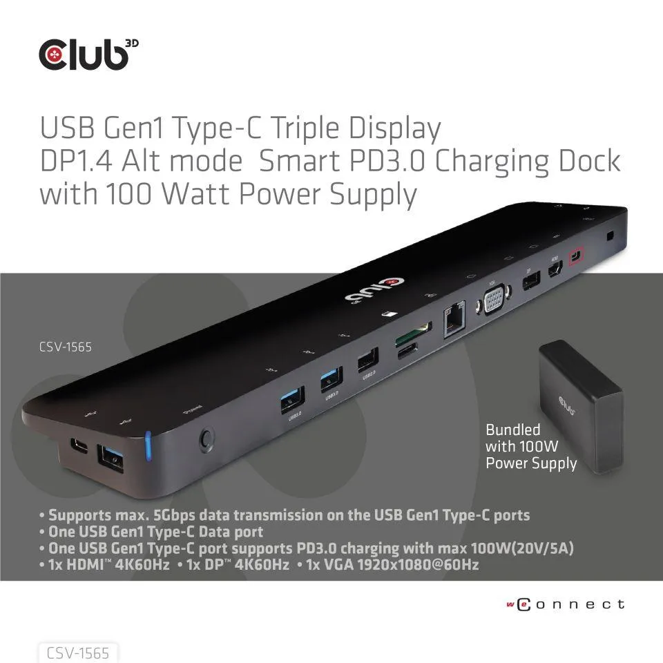 | Tootja koduleht | https://club-3d.com/en/detail/2629/usb_gen1_type_c_triple_display_dp1.4_alt_mode_smart_pd3.0_charging_dock_with_100_watt_power_supply/ |