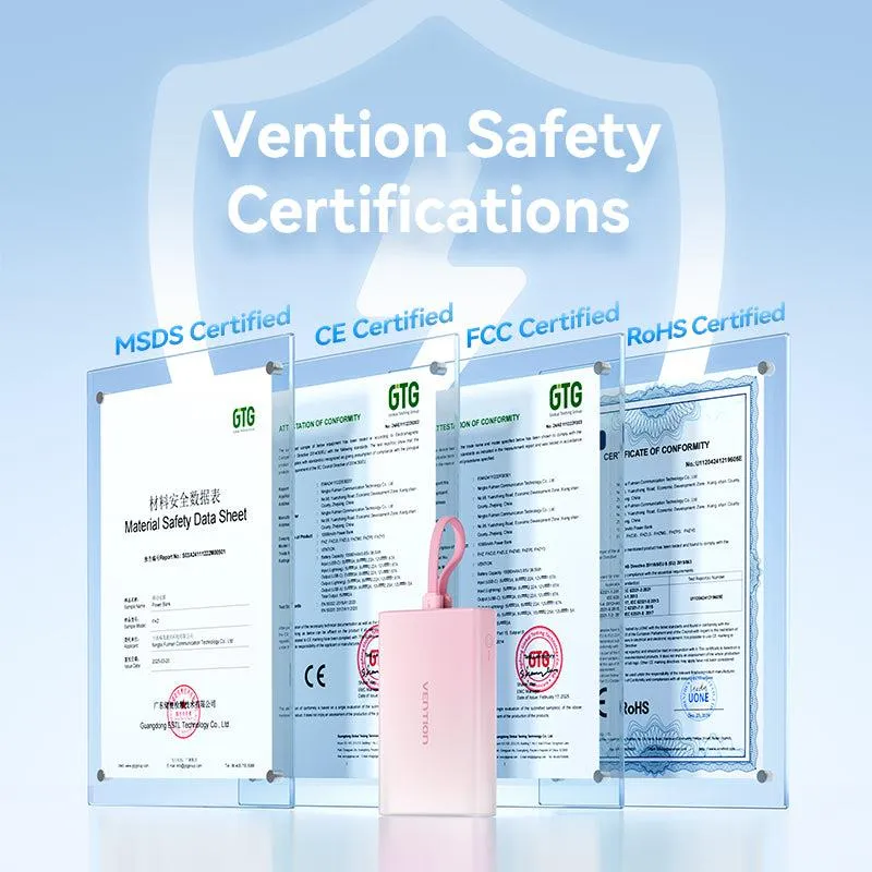 | Summary | Vention FHZY0. Battery capacity: 10000 mAh, Battery voltage: 3.85 V. USB Type-A output ports: 1, USB Type-C ports quantity: 1. Output current: 3 A. Product colour: Yellow |