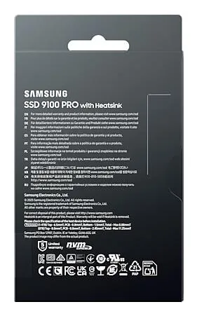 | Summary | Samsung 9100 PRO. SSD capacity: 8 TB, SSD form factor: M.2, Read speed: 14800 MB/s, Write speed: 13400 MB/s, Component for: PC/Game console |