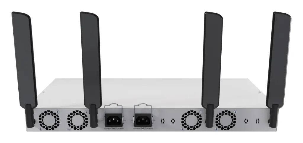 We know rackmounts are not famous for great wireless coverage. That’s why the CRS418 Wi-Fi edition includes dedicated holes in the back for pigtails, so you can place antennas outside the case if needed.