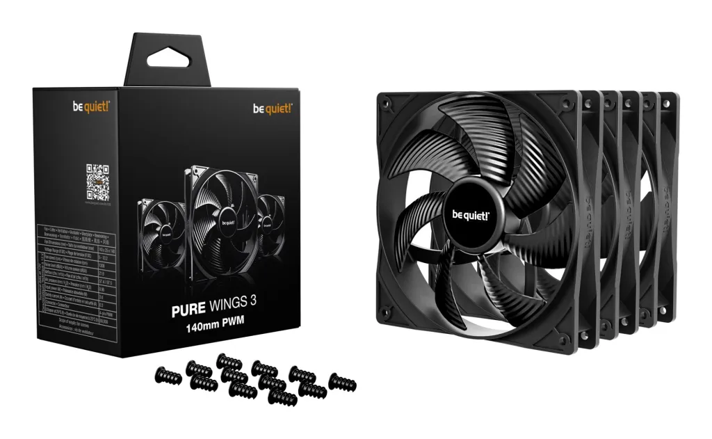 | Summary | be quiet! Pure Wings 3 140mm | PWM Triple Pack. Type: Fan, Fan diameter: 14 cm, Rotational speed (max): 1200 RPM, Airflow: 97.5 m³/h, Maximum air pressure: 0.96 mmH2O, Bearing type: Rifle bearing. Voltage: 5 - 13.2 V. Product colour: Black |