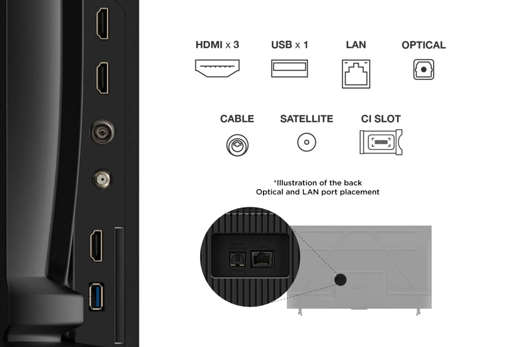 | TCL‘i tehnoloogiad (AV/TV) | 4K HDR Display, Chromecast Built-In, HVA Screen, Motion Clarity, T-cast |