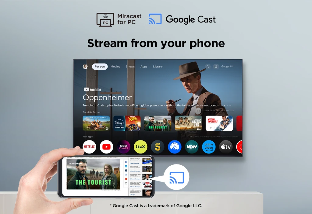 | Videoäpid | All 4, Amazon Prime Video, BBC iPlayer, Disney+, Google TV, HBO, ITV Hub, ITV X, My5, NOW TV, Netflix, Twitch, YouTube |