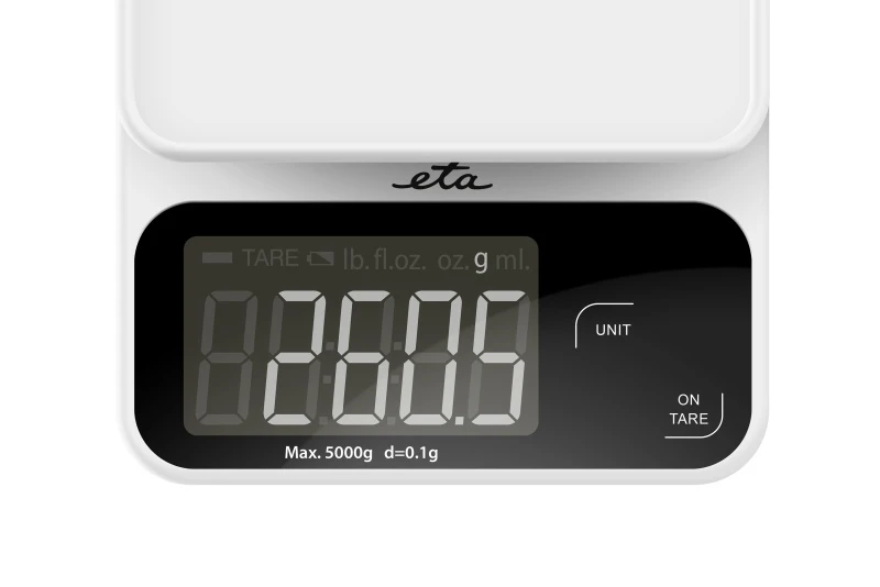 | Unit of measure | g, oz, fl.oz, ml, ml milk |