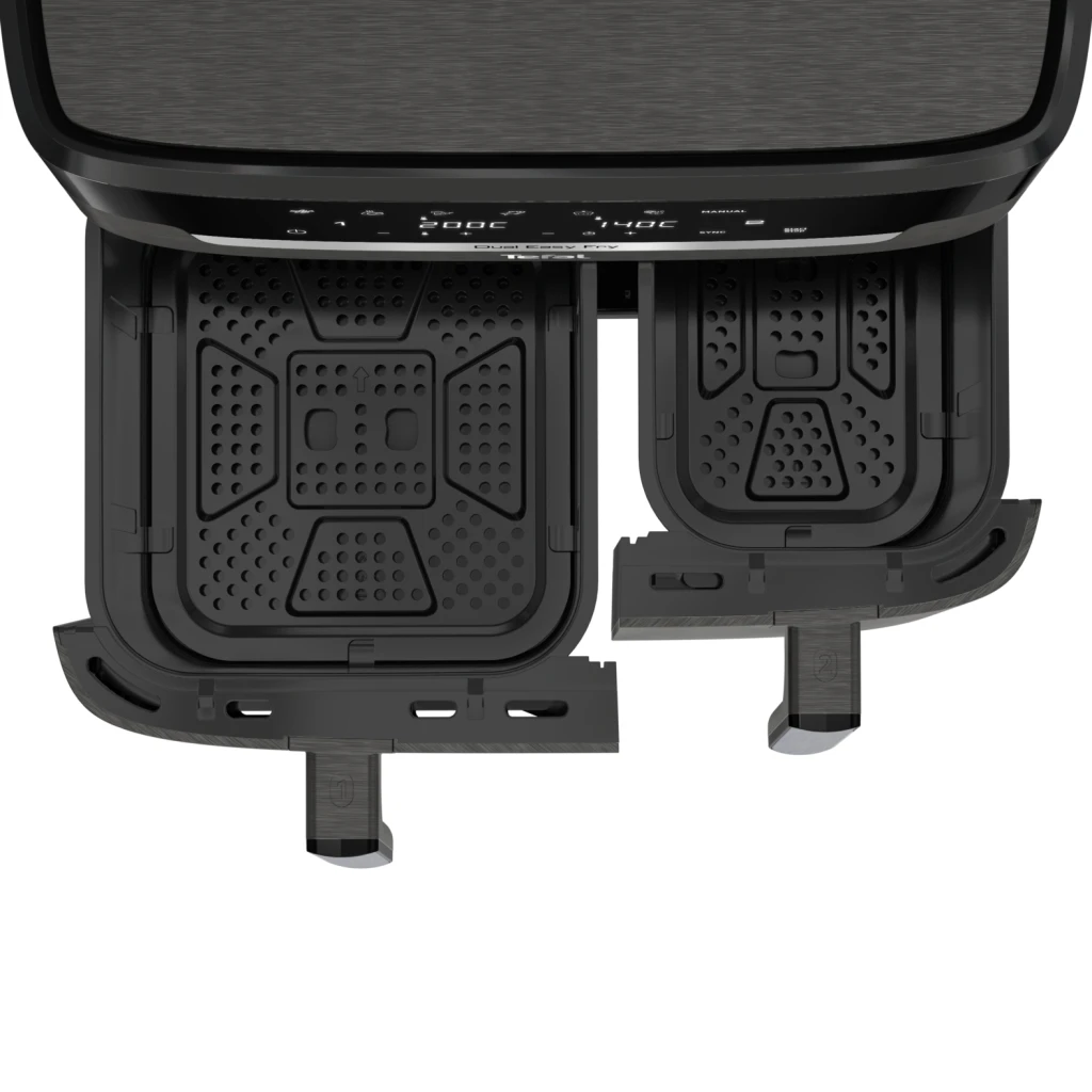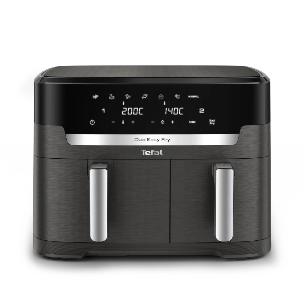 Tefal Easy Fry Dual XXL EY942HE0. Toote tüüp: Kuumaõhu fritüür, Maht: 11 l, Temperatuur (min): 40 °C. Disaini tüüp: Kahekohaline, Toote värv: Hall, Kontrolli tüüp: Puudutus. Kuvamise tüüp: LCD. Võimsus: 2020 W. Laius: 458 mm, Sügavus: 385 mm, Kõrgus: 330 mm