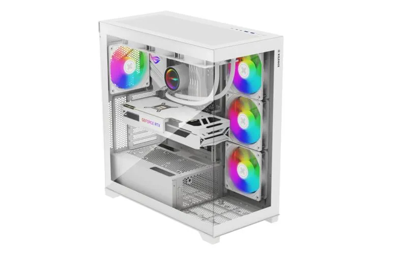 ARGB aquarium style: The Xilent Gleam case features front and side panels made of high-quality transparent glass. The glowing ARGB fans inside provide a powerful visual display that transforms the gaming rig into a work of art.