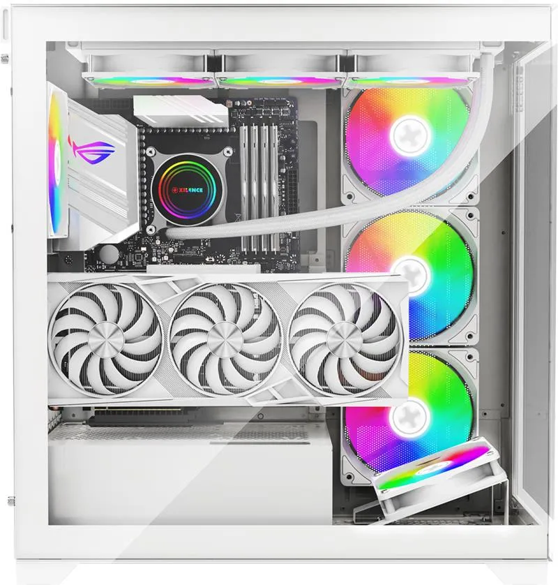 Xilence Xilent Gleam - Brilliant aesthetics, limitless power, gaming experience in new splendor! This case combines innovative functionality with an appealing design in black and white in ARGB aquarium style, which gives the gaming setup a unique shine.