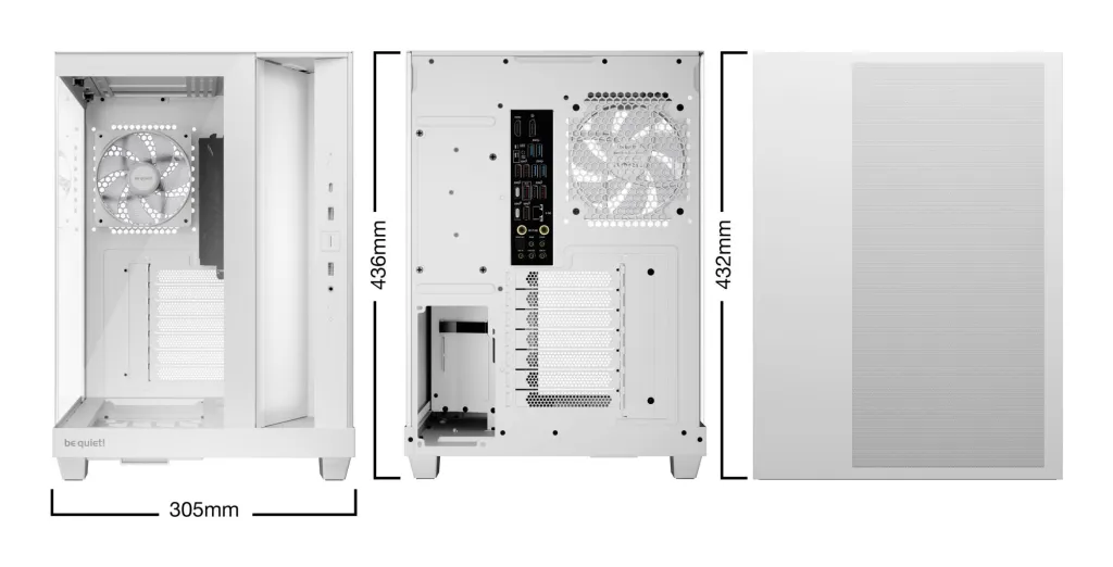 | Summary | be quiet! Light Base 500 LX White. Form factor: Midi Tower, Type: PC, Product colour: White. Supported power supply form factors: ATX, PS2. Side fans installed: 3x 120 mm, Side fans diameters supported: 120 mm, Rear fans installed: 1x 120 mm. Supported HDD sizes: 2.5,3.5". Width: 305 mm, Depth: 432 mm, Height: 436 mm |