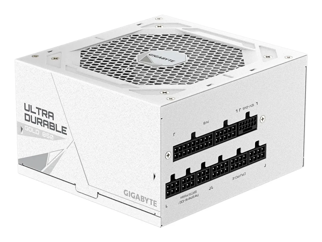 | Summary | GIGABYTE UD850GM PG5 V2 ICE Power Supply Unit- PCIe Gen 5.1, 80 PLUS Gold, Fully Modular Design, 120mm Fan, ATX 3.1 compatible, UK Plug. Total power: 850 W, AC input voltage: 100 - 240 V, AC input frequency: 50/60 Hz. Motherboard power connector: 20+4 pin ATX, Motherboard power cable length: 61 cm, PCI Express power connectors (12+4 pin) cable length: 700 mm. Purpose: PC, Power supply unit (PSU) form factor: ATX, 80 PLUS certification: 80 PLUS Gold. Product colour: White, Cooling type: Active, Fan diameter: 12 cm. Width: 150 mm, Depth: 140 mm, Height: 86 mm |