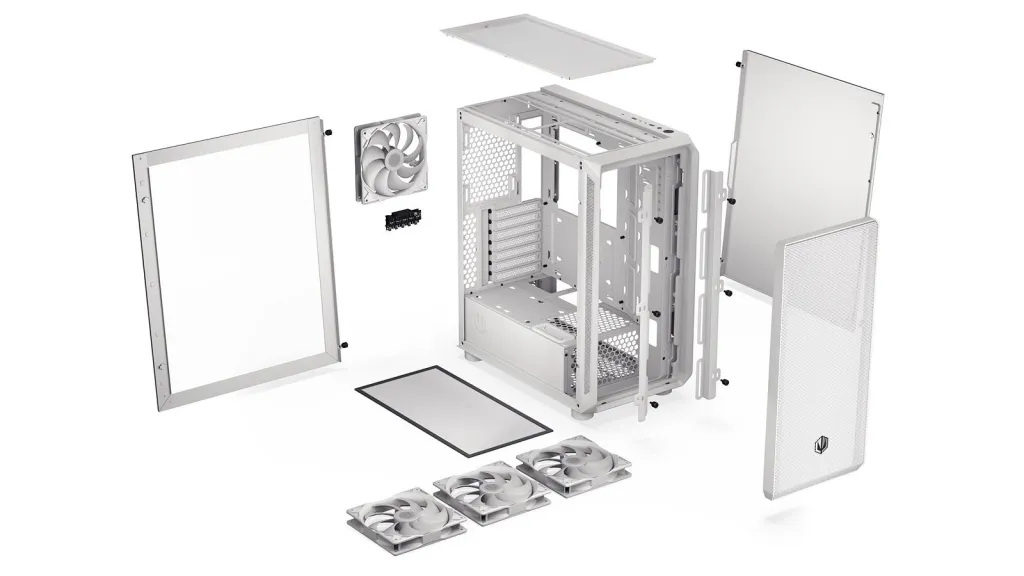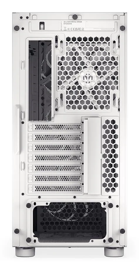 The Arx 500 White ARGB is a spacious PC case that easily accommodates even the most demanding components. The case supports a wide range of cooling configurations, including a 360 mm radiator at the front, a 280 mm radiator at the top, and a 140 mm radiator at the rear. It also fits air coolers up to 179 mm tall and up to 7 fans.