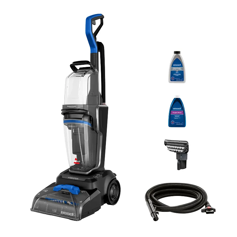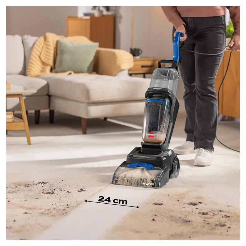 Bissell PowerWash HydroSteam. Masina tüüp: Eeslükatav, Puhastamise tüüp: Sügav, Puhta vee konteineri maht: 3,78 l. Toote värv: Must, Sinine, Titaanium, Juhtme pikkus: 6,18 m, Vooliku pikkus: 2,1 m. Laius: 420 mm, Sügavus: 300 mm, Kõrgus: 1070 mm. Garantiiaeg: 2 aasta(t)