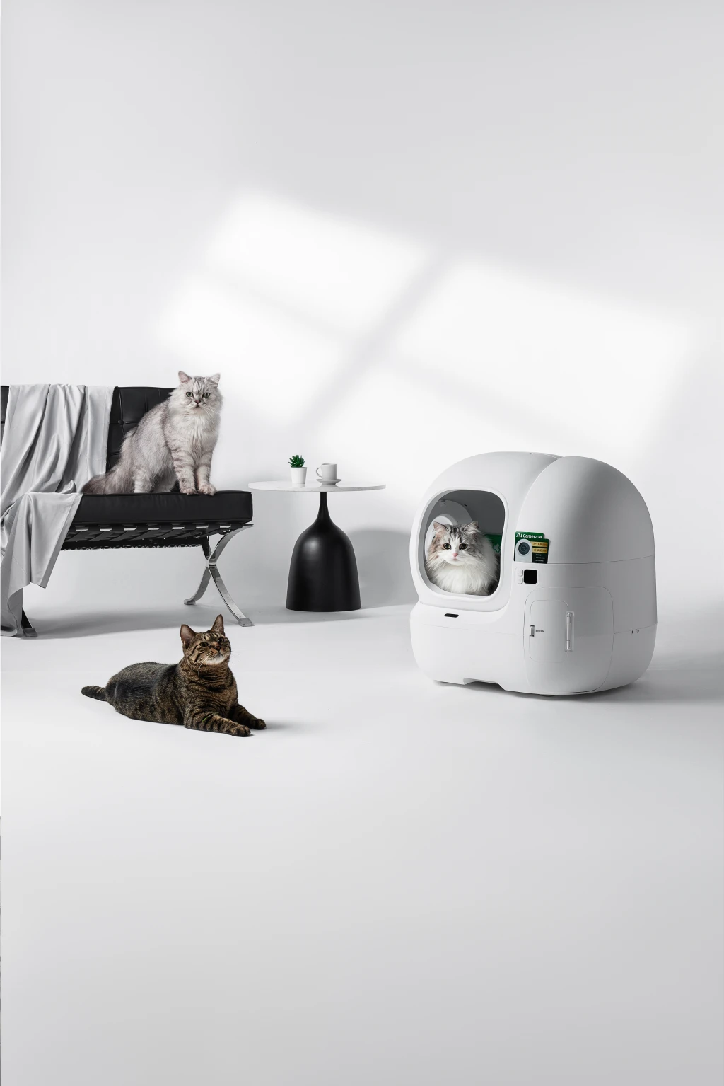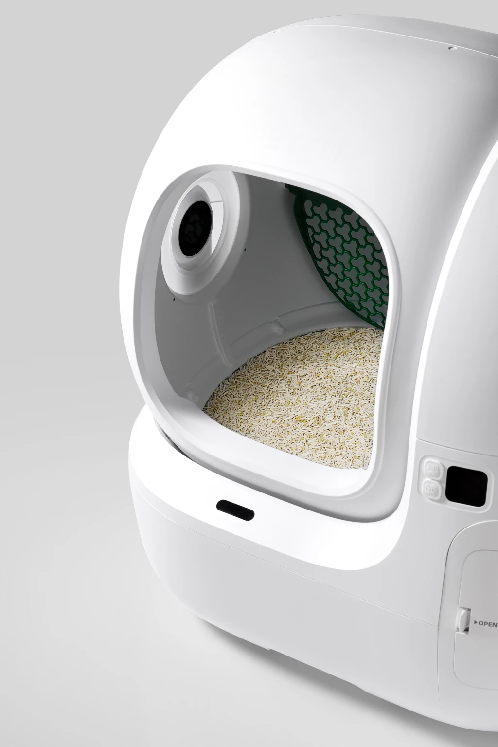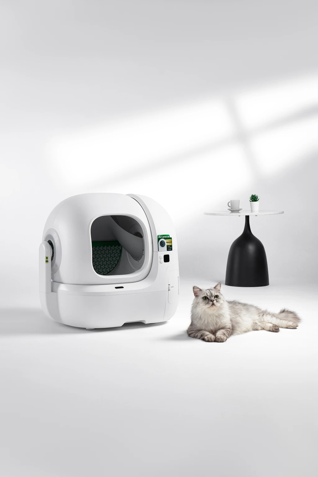 Bigger Entry for Easy In & Out; AI Camera for Tracking Litter Box Usage & Urinary Health Monitoring; Multi-cat Recognition; Smart App Control & Health Insights; 17 Days Free-scooping (8L Waste Bin); Contactless Drawstring Waste Packing; Triple Odor Control; 100% Safety Protection; Patented Leak-proof Cylinder; Ultra Quiet