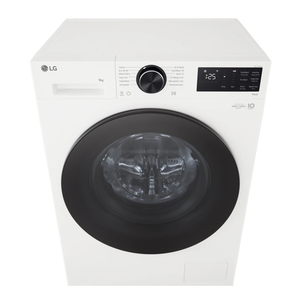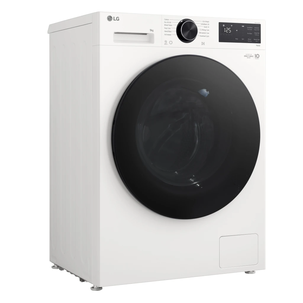 LG 9kg 1200rpm Washing Machine - White. Laadimistüüp: Eest täidetav. Nimitäitekogus: 9 kg, Tsentrifuugimise klass: B, Müratase (tsentrifuugimisel): 71 dB, Müratase (pesu): 56 dB, Maksimaalne pöörlemiskiirus: 1170 RPM. Toote värv: Valge. Laius: 600 mm, Sügavus: 535 mm, Kõrgus: 850 mm. Energiatõhususe klass: A