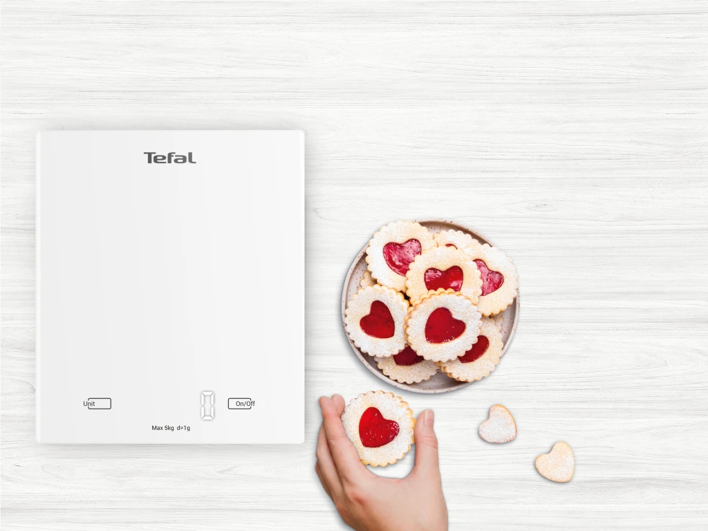 Tefal Essential BC5504V0. Tüüp: Elektrooniline köögikaal, Maksimaalne kaal (mahutavus): 5 kg, Täpsus: 1 g. Kuvamise tüüp: LCD, Ekraani suurus (k x v): 46 x 20 mm. Aku tüüp: AAA, Akutehnoloogia: Aluseline, Aku pinge: 1,5 V. Laius: 180 mm, Sügavus: 210 mm, Kõrgus: 15 mm. Pakendi laius: 187 mm, Pakendi sügavus: 218 mm, Pakendi kõrgus: 26 mm