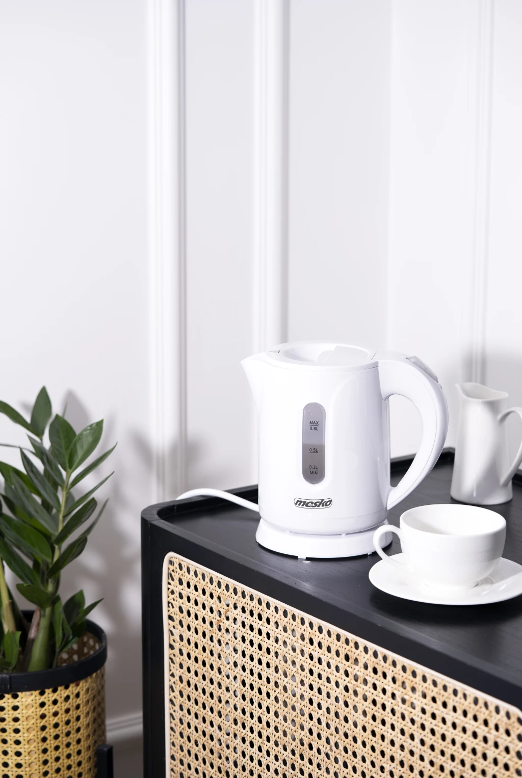 Flat stainless steel heater; Filter that stops calcium deposits; Double-sided water level indicator, equally comfortable for right- and left-handed users; Protection against boiling without water