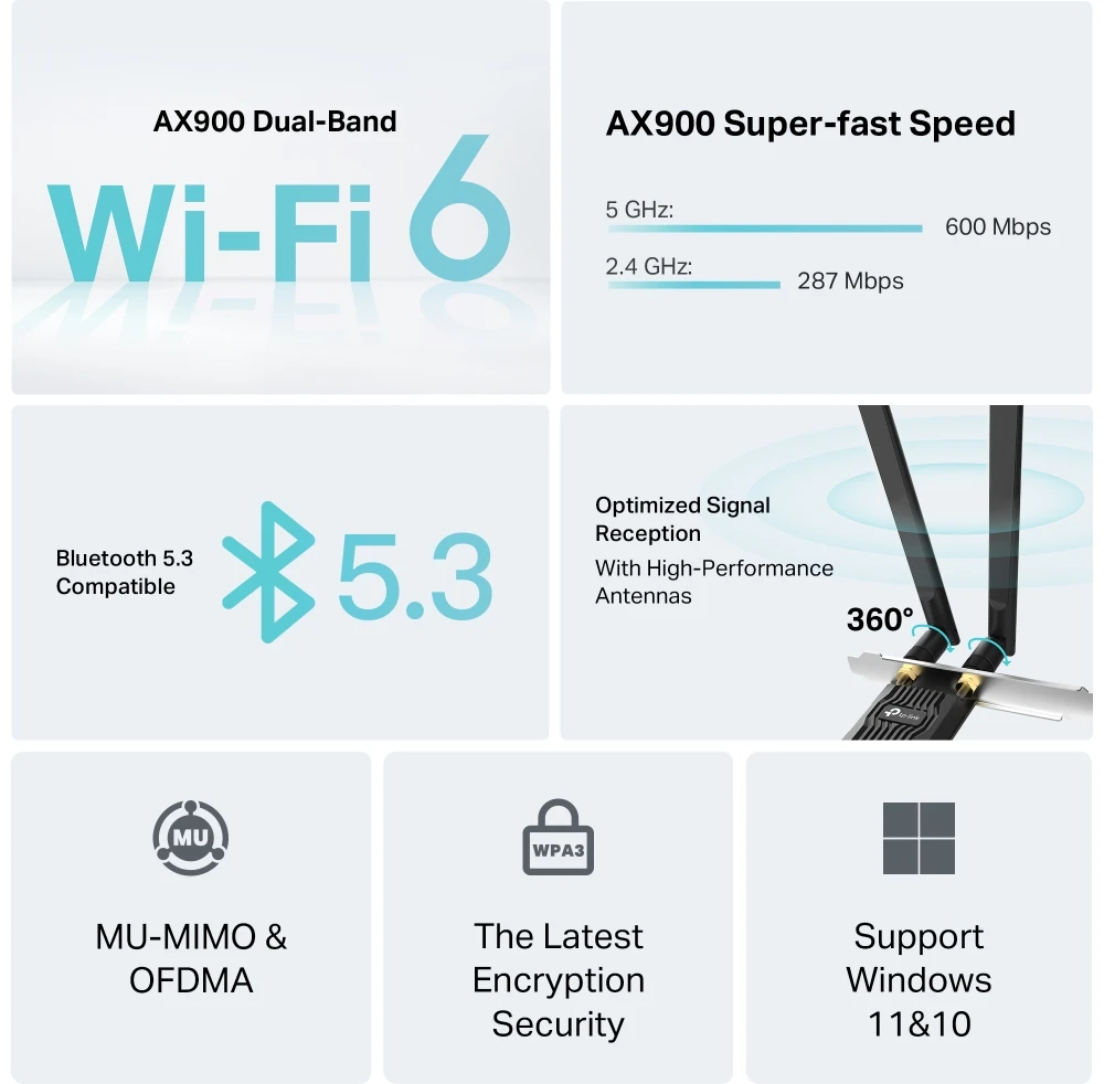 | Tooteseeria | AX900 Wi-Fi 6 Bluetooth PCIe Adapter |