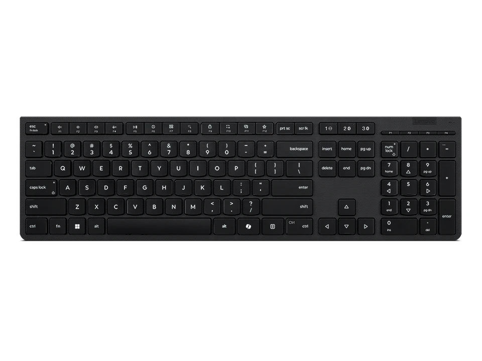 Lenovo 4Y41R64540. Klaviatuuri kujutegur: Täissuuruses (100%), Ühenduvustehnoloogia: Juhtmevaba, Seadme liides: RF juhtmeta ühendus + Bluetooth, Klaviatuuri klahvilüliti: Käärlüliti, Klaviatuuri klahvide arv: 104. Kaabli pikkus: 1 m. Soovituslik kasutus: Kodu/kontor. Toote värv: Must