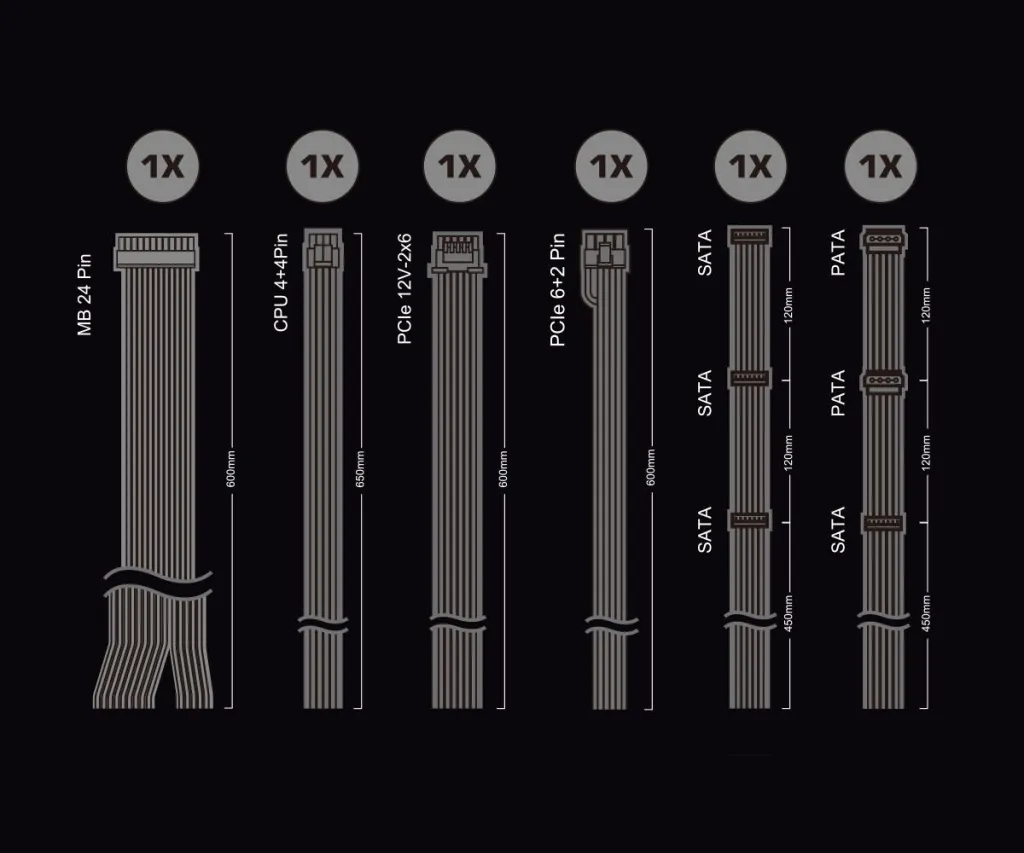 | Motherboard power cable length | 600 mm |