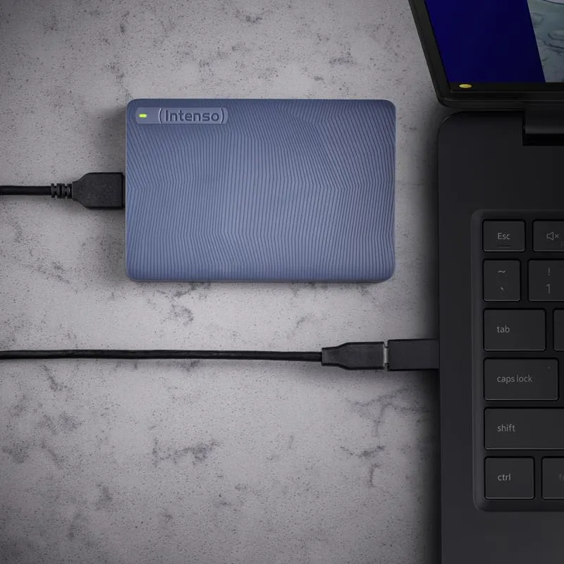 The Intenso Memory Safe 2.5″ external hard drive offers secure storage for your most important data – whether photos, videos, or documents. Available with 1 TB or 2 TB capacity and equipped with a fast USB 3.2 Gen 1×1 interface (up to 5 Gbit/s), it ensures high transfer speeds of up to 85 MB/s for reading and 75 MB/s for writing. The integrated status LED reliably indicates the operating status at all times.