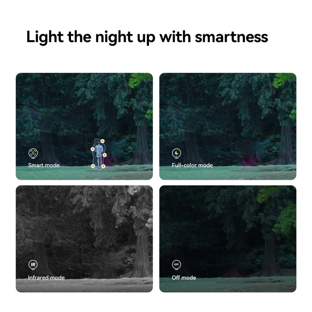 Cruiser Dual 2C 4G supports 3 night vision modes, which can be switched depending on whether or not someone is present or if you wish to switch on the light, or turn it off.