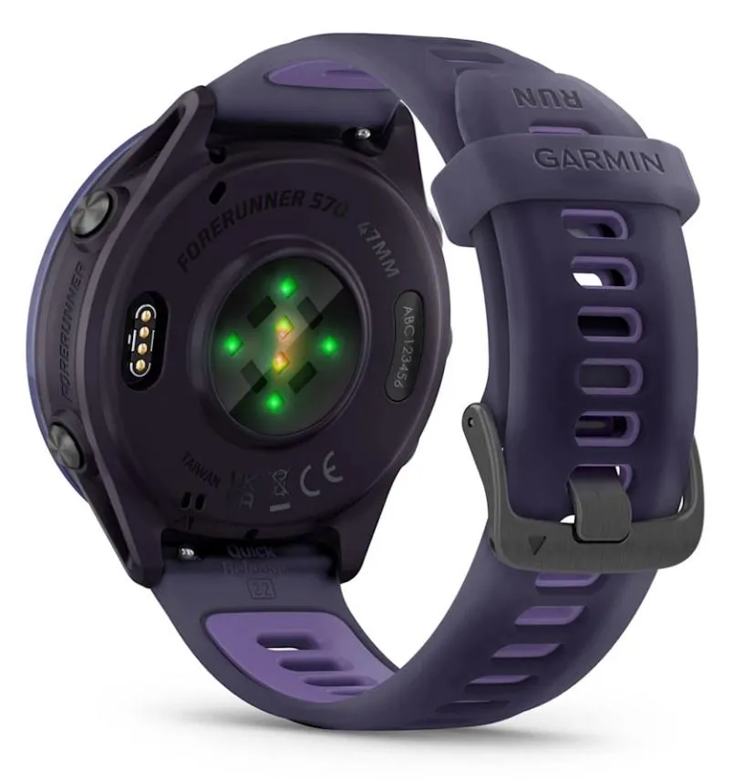 | Summary | Garmin Forerunner 570. Display diagonal: 3.56 cm (1.4"), Display technology: AMOLED, Display resolution: 454 x 454 pixels, Touchscreen. Flash memory: 8 GB. Wi-Fi. GPS (satellite). Weight: 50 g. Band material: Silicone, Band colour: Violet |