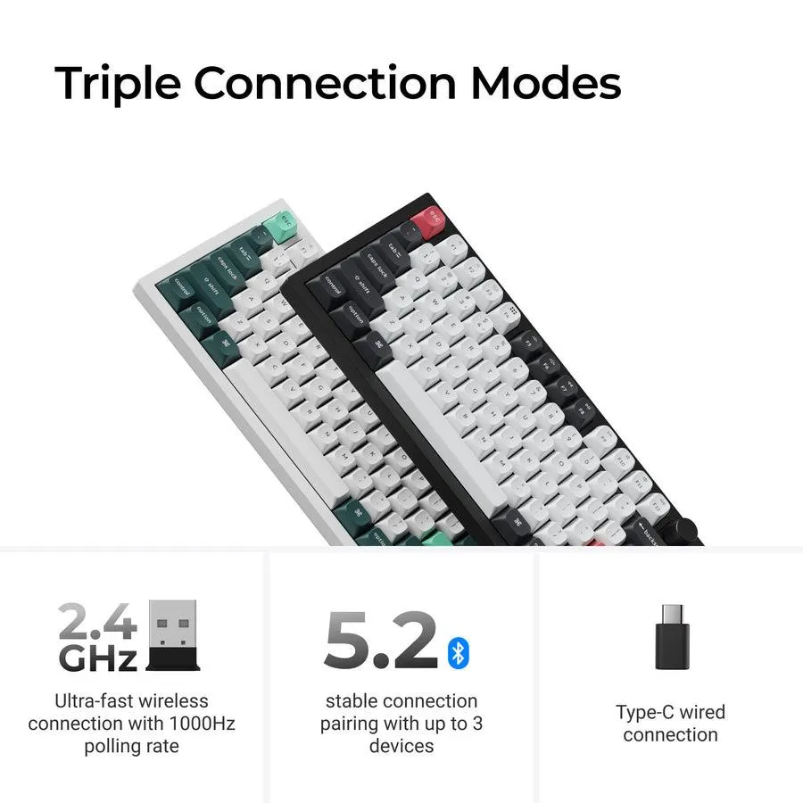 Engineered with a powerful chip (MCU) with 256K flash and QMK open-source firmware to provide more flexibility for developers. The polling rate is 1000 Hz out of the box in Type-C wired mode and 2.4 GHz mode, which greatly helps when competitively gaming.
