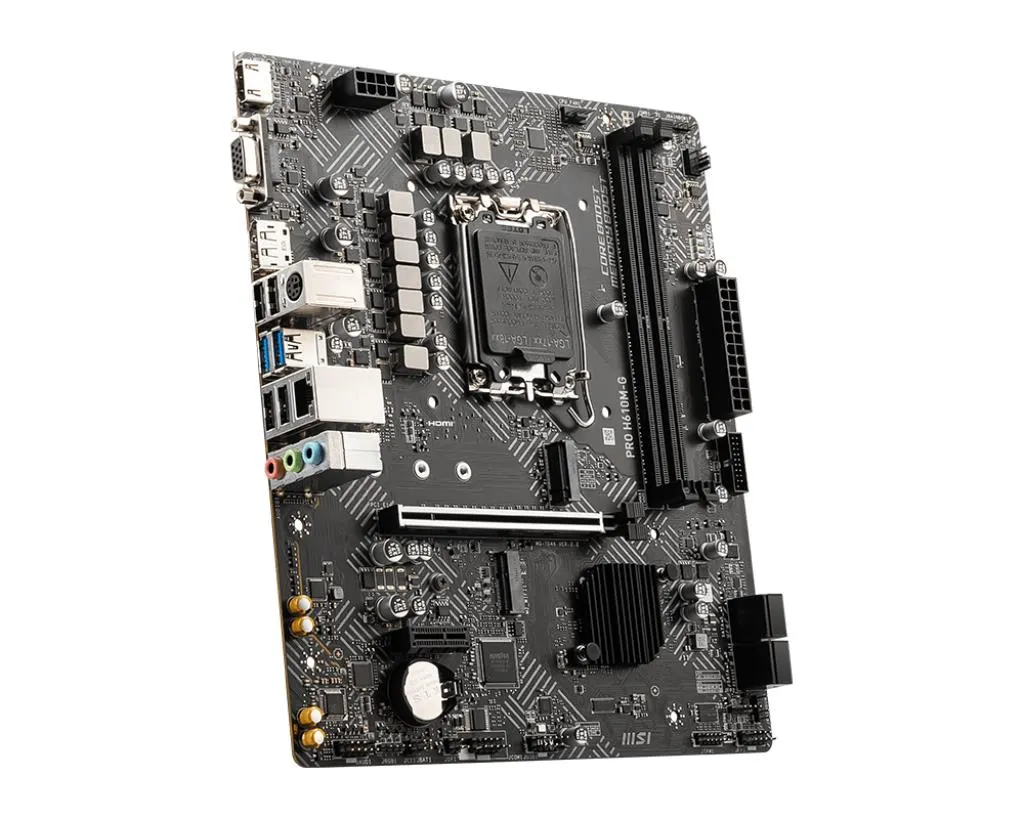 | Summary | MSI PRO H610M-G. Processor manufacturer: Intel, Processor socket: LGA 1700, Compatible processor series: Intel® Core™ i9. Supported memory types: DDR5-SDRAM, Maximum internal memory: 96 GB, Memory slots type: DIMM. Supported storage drive interfaces: M.2, SATA III, Supported storage drive types: SSD. Ethernet interface type: Gigabit Ethernet. Component for: PC, Motherboard form factor: micro ATX, Motherboard chipset family: Intel |