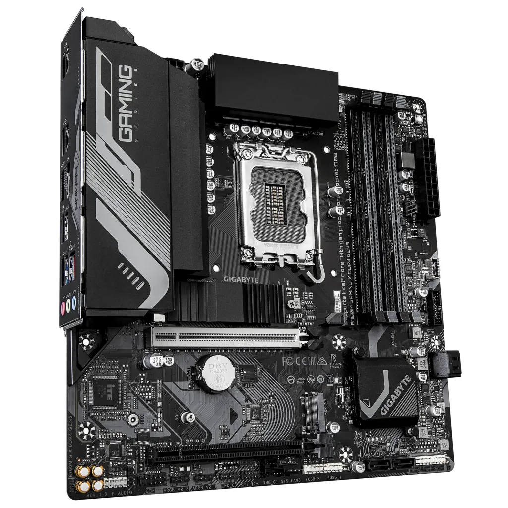 | Summary | GIGABYTE B760M GAMING X DDR4 GEN5 Motherboard - Supports 14th Gen. Intel Core CPUs, 8+1+1 phases VRM, up to 3200MHz DDR4, 2xPCIe 4.0 M.2, 2.5 GbE LAN, USB 3.2 Gen 1. Processor manufacturer: Intel, Processor socket: LGA 1700, Compatible processor series: Intel® Celeron®, Intel Core i3 12th Gen, Intel Core i3 13th Gen, Intel Core i3 14th Gen, Intel.... Supported memory types: DDR4-SDRAM, Maximum internal memory: 128 GB, Memory slots type: DIMM. Supported storage drive interfaces: M.2, PCI Express 4.0, SATA III, Supported storage drive types: HDD & SSD, RAID levels: 0, 1, 5, 10. Maximum resolution: 4096 x 2304 pixels. Ethernet interface type: 2.5 Gigabit Ethernet, LAN controller: Realtek RTL8125 |