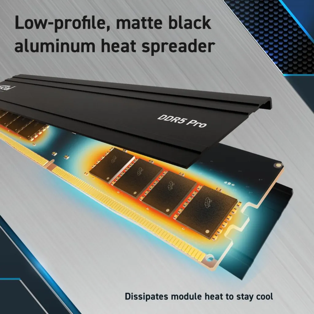 With our integrated low-profile heat spreader, Crucial DDR5 Pro can even fit in smaller PCs.