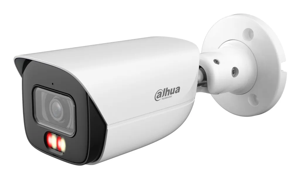 Dahua Smart Dual Light technology adopts smart algorithm to detect targets. Usually, the IR illuminator is on at night; when the target appears in the monitoring area, the white light is on, and the camera records the full-color video and information of key events. That is, the camera links snapshot and video with full-color image. When the target is out of the monitoring area, the white light is off and the IR illuminator is on, which reduces light pollution efficiently.