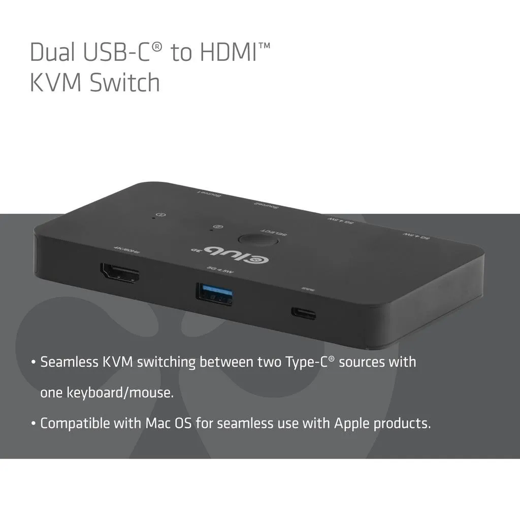 • SEAMLESS KVM SWITCHING: Switch between two Type-C® sources to control with one keyboard/mouse on a 4K/60Hz HDMI™ display