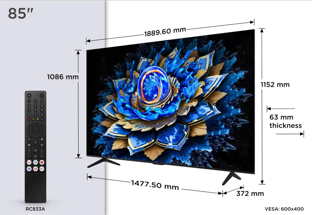 | Ekraani diagonaal | 85 " |