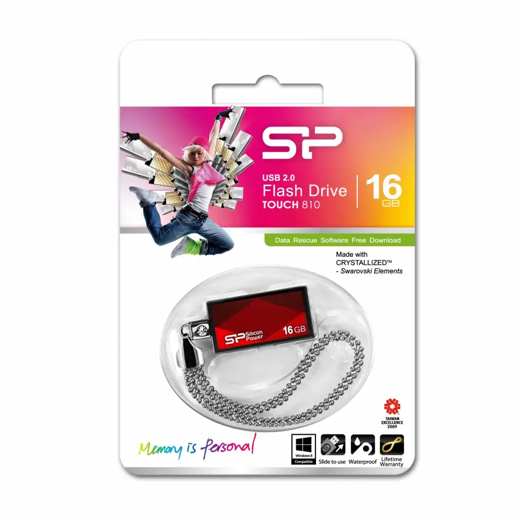 Silicon Power Touch 810. Maht: 16 GB, Seadme liides: USB tüüp A, USB versioon: 2.0. Kujutegur: Liugur. Kaal: 5 g. Toote värv: Punane