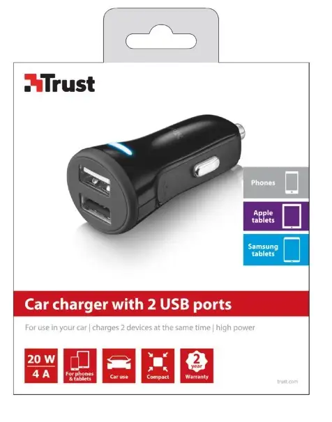 | Tootja koduleht | www.trust.com/en/product/20572-20w-car-charger-with-2-usb-ports-black |