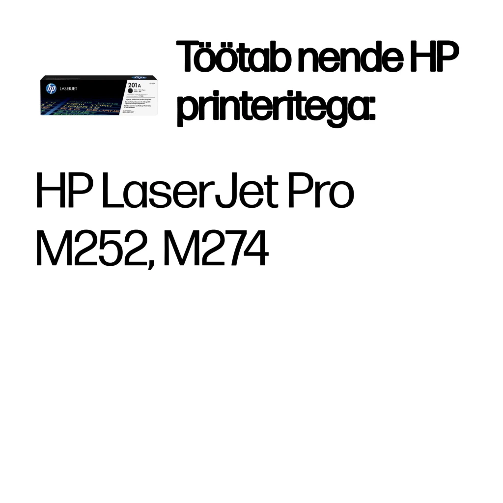 | Ühilduvus | HP 201 toner cartridges work with: HP LaserJet Pro M252, M274 |