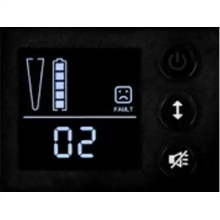 | Functions | Deep discharge protection, Overload protection, Automatic battery test, Acoustic signal transmitter, Alarms (power failure, overload, short-circuit, flat battery, replace battery, fan failure, AVR and charging unit failure) |