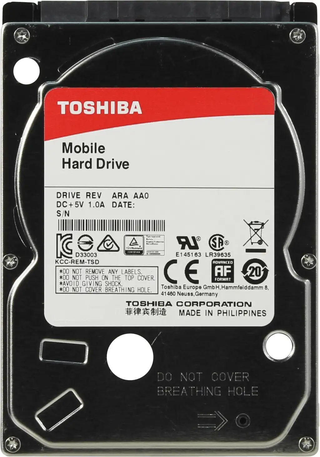 Toshiba MQ01ABF050M. Kõvaketta suurus: 2.5", Kõvakettamaht: 500 GB, Kõvaketta kiirus: 5400 RPM, Kõvaketta liides: Jada ATA III, Seadme tüüp: HDD, Draiviseade, puhvri suurus: 8 MB