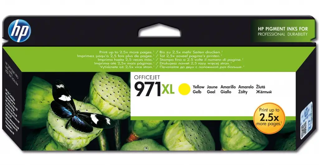 HP 971XL High Yield Yellow Original Ink Cartridge. Värvilise trüki lehekülgede arv: 6600 lehekülge, Printimisvärvid: Kollane, Kogus pakis: 1 tk