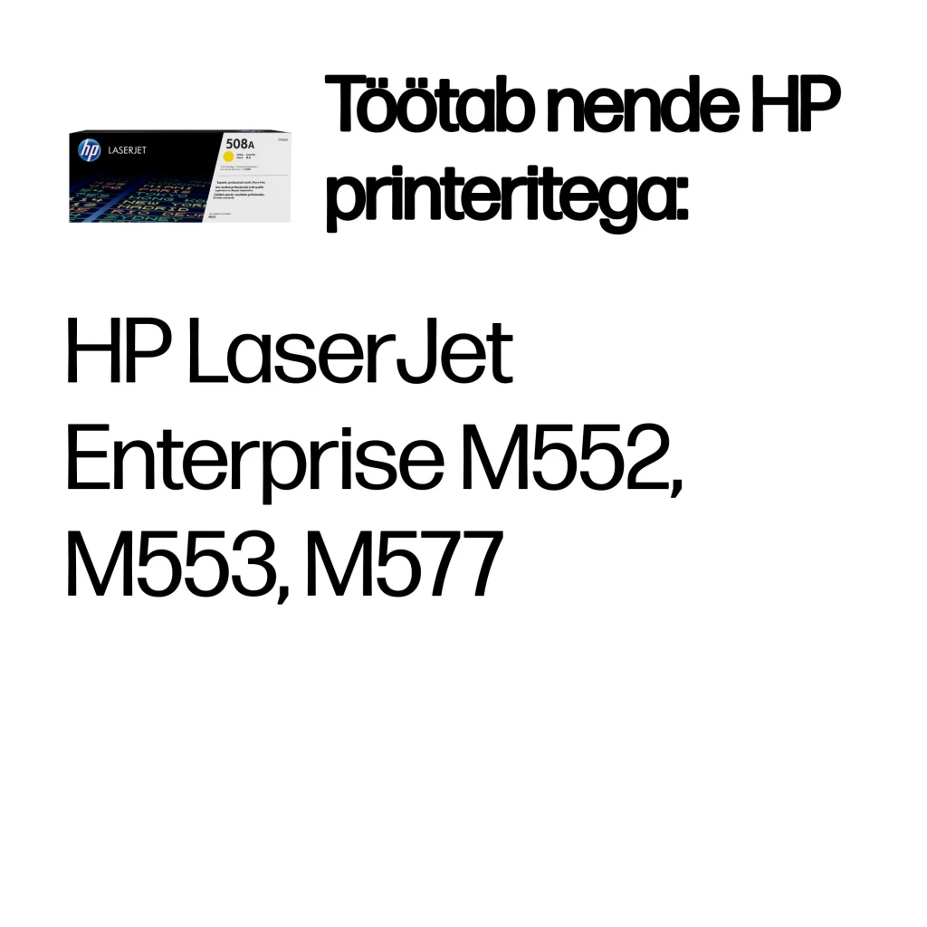 HP 508A Yellow Original LaserJet Toner Cartridge. Värvilise toonerkasseti prinditavate lehekülgede arv: 5000 lehekülge, Printimisvärvid: Kollane, Kogus pakis: 1 tk
