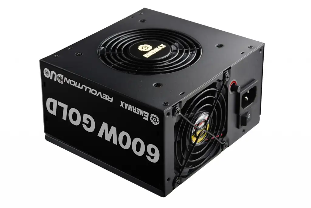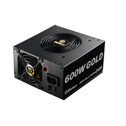 Enermax Revolution DUO 600W. Koguvõimsus: 600 W, AC-sisendpinge: 115 - 240, AC-sisendsagedus: 47 - 63. Ventilaatori läbimõõt: 100 + 80, Ventilaatorite arv: 2 ventilaator(id), Jahutuse tüüp: Aktiivne. Emaplaadi toitepistmik: 20+4 pin ATX. Otstarve: PC, Toiteploki (PSU) standard: ATX, Müratase: 12 dB. Toote värv: Must