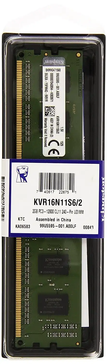 Kingston Technology ValueRAM 4GB DDR3-1600. Komponent: PC/server, Sisemälu: 4 GB, Mälu paigutus (moodulid x suurus): 1 x 4 GB, Sisemälu tüüp: DDR3, Mälu taktsagedus: 1600 MHz, Mälu kujutegur: 240-pin DIMM, CAS-latentsusaeg: 11