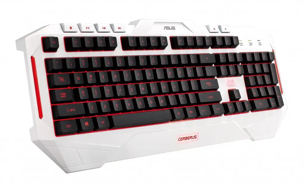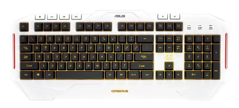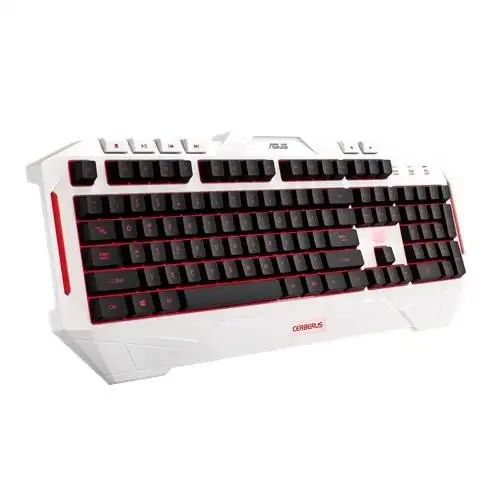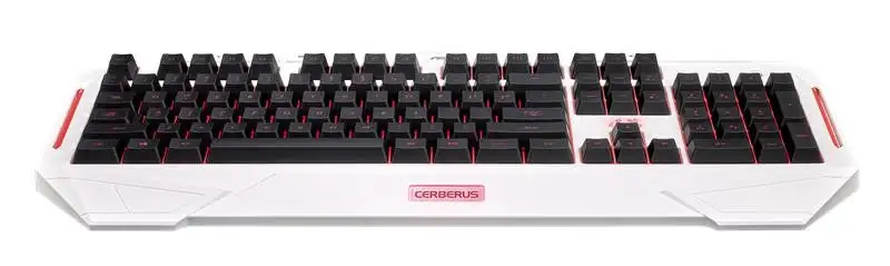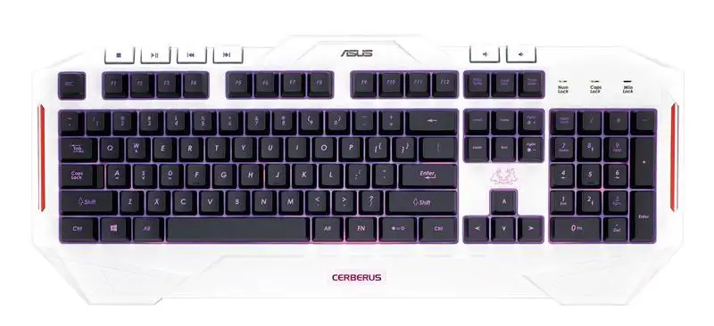 ASUS Cerberus Arctic. Klaviatuuri kujutegur: Standard. Klaviatuuri stiil: Sirge. Ühenduvustehnoloogia: Juhtmega ühendatud, Seadme liides: USB, Klaviatuuri klahvilüliti: Mehaaniline klahvlüliti. Kaabli pikkus: 2 m. Soovituslik kasutus: Mängimine. Toote värv: Valge